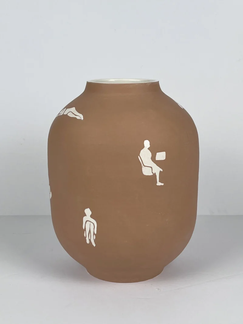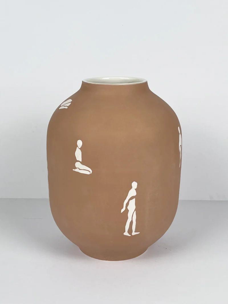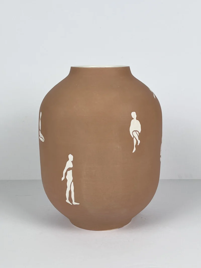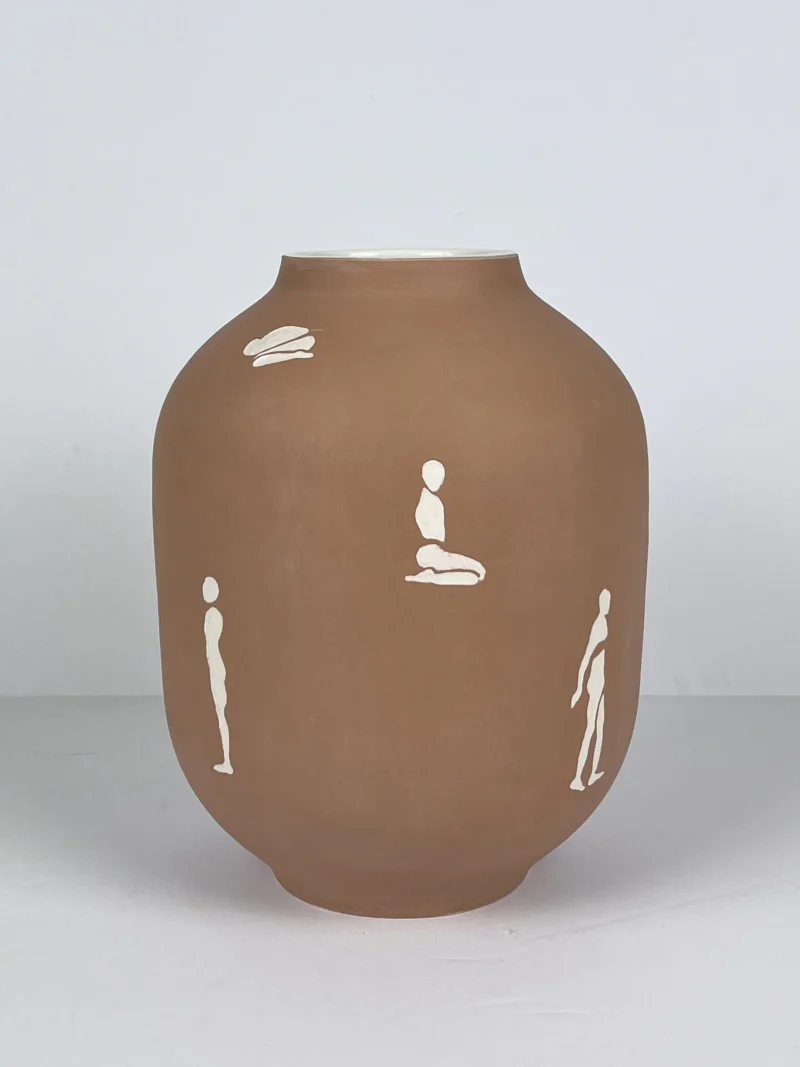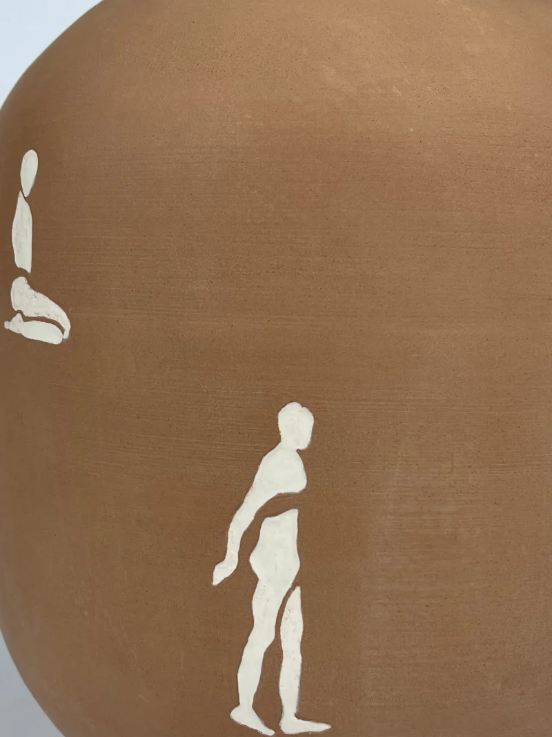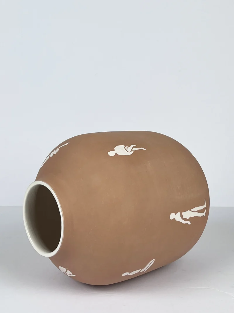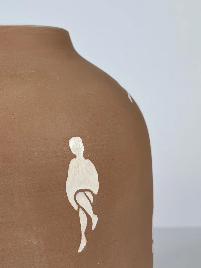 Ceramic vase with Montelupo clay slip and white Vietri glaze.