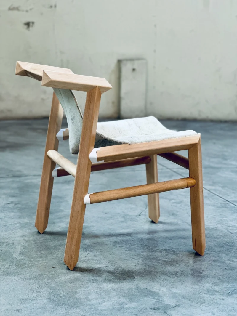 The chair design language and construction process is based in the slow made philosophy, combining traditional and modern techniques, 3D printed joints, digital fabrication and handmade process.