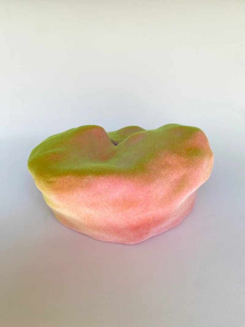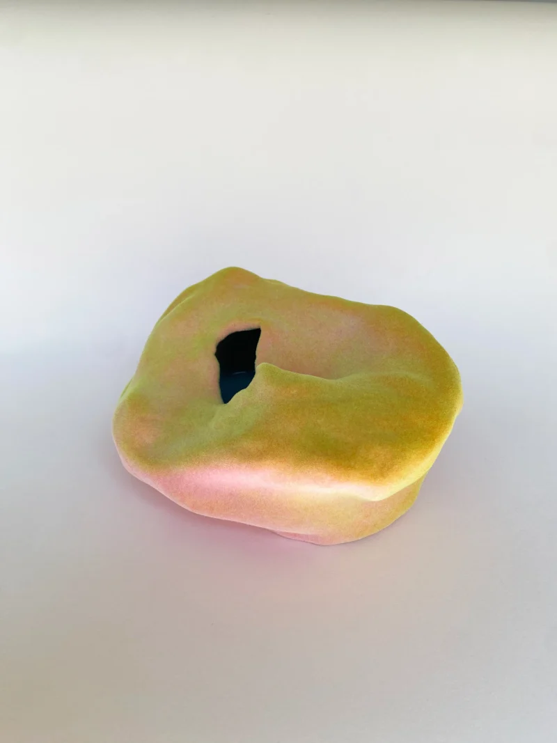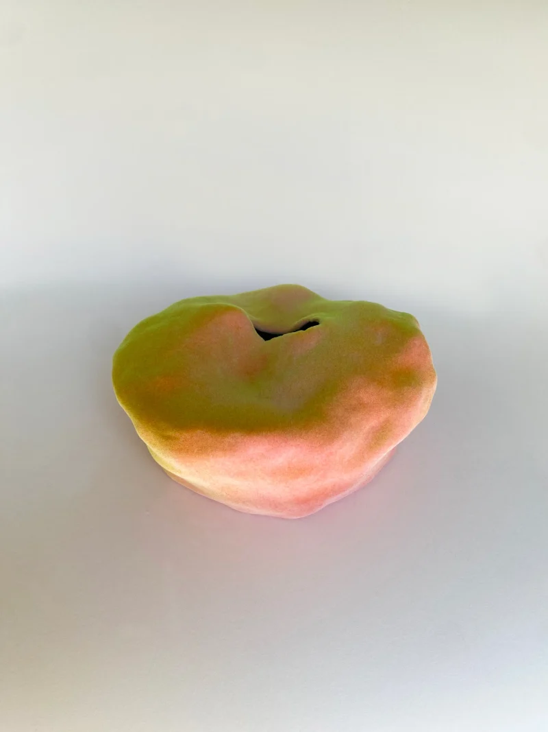UKWIAŁ’s work explores innovative forms of expression in ceramics, characterized by bold combinations of colors and smooth, tactile finishes. Each piece is meticulously hand-formed, imbuing it with a distinct and individual character. Using the flocking technique, the ceramics are transformed into unexpectedly soft, organic forms, inviting touch and evoking a profound connection to nature. This approach reflects a deep fascination with the natural world and a commitment to pushing the boundaries of ceramic artistry.