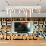 Custom-made Helium Fractal Chandelier with a powder-coated metal canopy. The light is emitted by helium gas through bent translucent glass tubing.