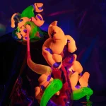part of the object are two interconnected glass creatures