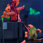 The object VERUSCHKA (consists of 2 interconnected objects) is part of the collection of objects Fashion Glass, which was created together with the fashion designer Barbora Kotěšovcová for the exhibition in the Kuzebauch gallery. The experimental object works in a novel way with the interweaving of glass and textile. The work uses the author’s models from the previous period, which he sews and combines, recycles into a new work. The objects refer to the fashion world, they combine textile materials and glass in unconventional ways, with exaggeration and wit, they work with the conventions of the fashion industry and the human body. The individual objects are inspired by the supermodels of the 80s and 90s – their pose, fabric and mood are forever captured in the interplay of the profane and the permanent.