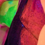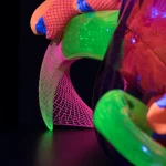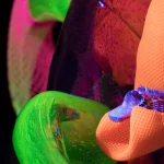 uranium and alexandrite glass, hand shaped, reflective textile covers, mesh, glued