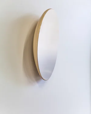 Due to the use of mirror-polished metal surfaces that are sensitive to scratching, particular care should be taken when handling and cleaning the objects. The mirror surface should only be wiped with a soft, high-quality microfiber cloth, such as one intended for cleaning eyeglasses or camera lenses.
