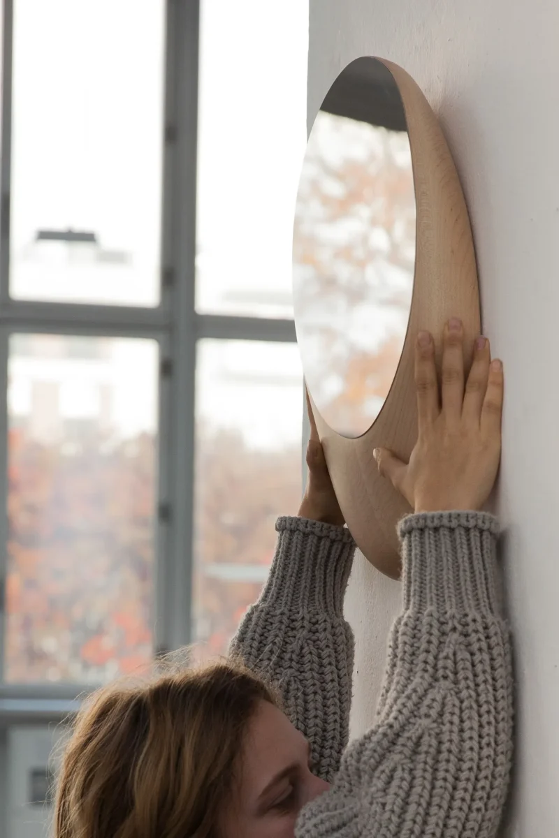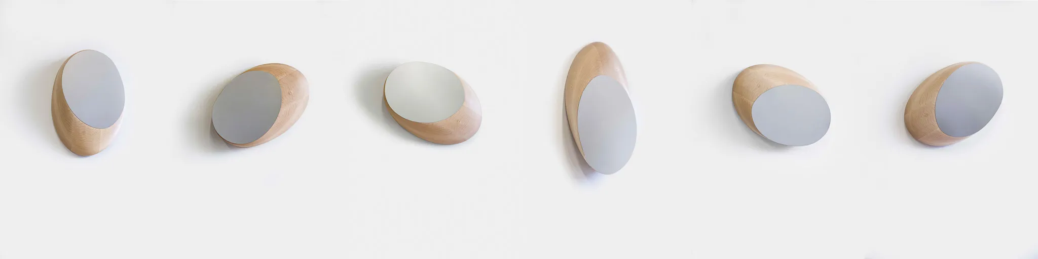 Each object in this series is wall-mounted and can be easily hung in six different orientations thanks to a specially designed hanger. This gives the user the possibility to change the orientation of a single object or an entire composition during use, without the need to re-mount it on the wall.