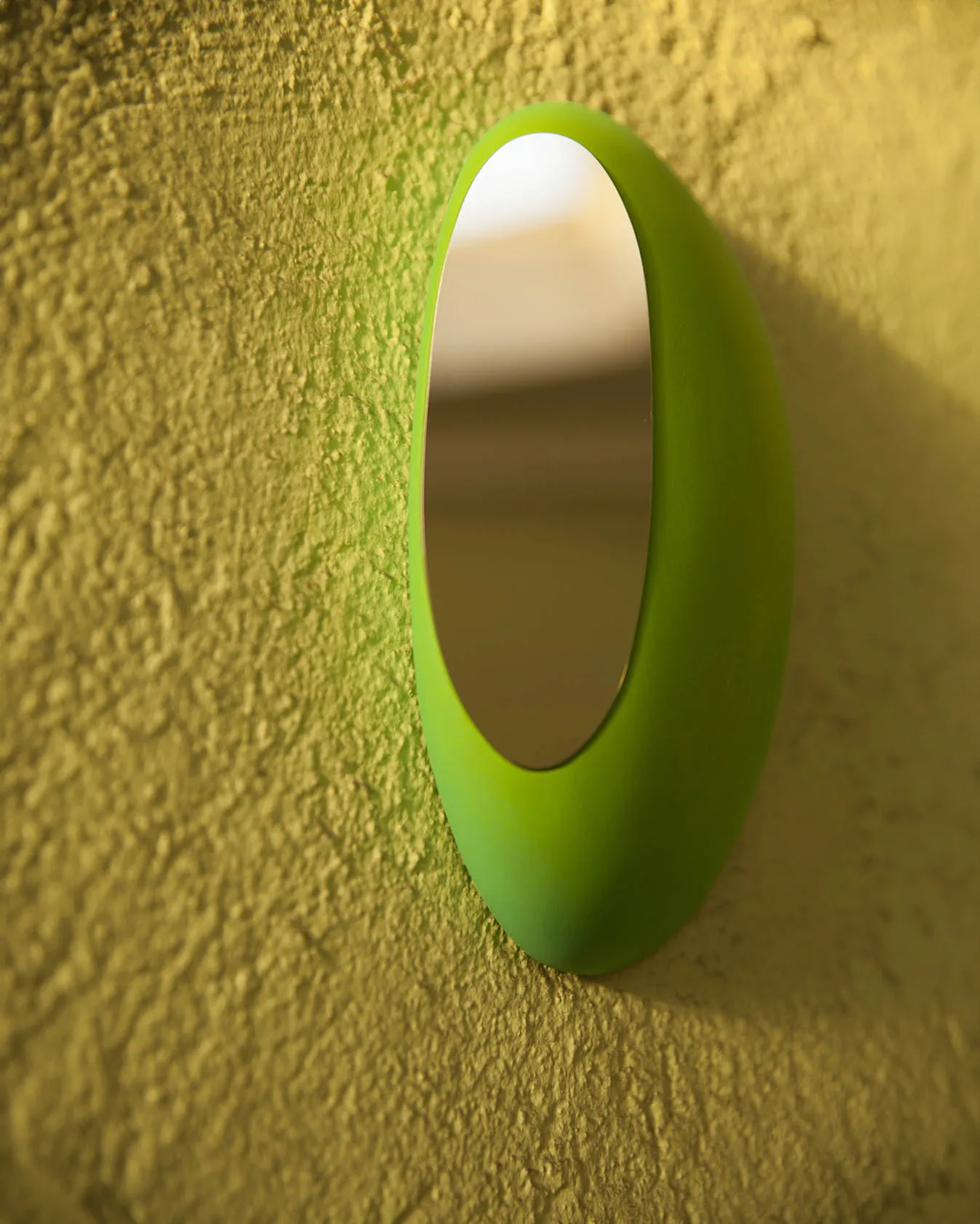 Beech wood hand-painted in PANTONE® 2293 U and PANTONE® 360 C, acid-resistant stainless steel polished to a mirror finish.