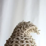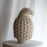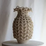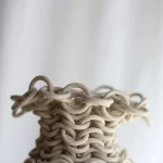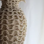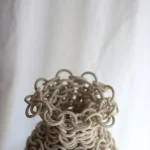 The vase undergoes a meticulous creation process: hand-thrown, hand-sculpted, trimmed, and kiln-fired twice to ensure both durability and artistic integrity. Its defining feature—the handcrafted ceramic chains—adds a dynamic, sculptural element, offering both visual intrigue and functional strength. The chains are carefully sealed for added protection, enhancing the piece’s longevity while preserving its artisanal beauty.