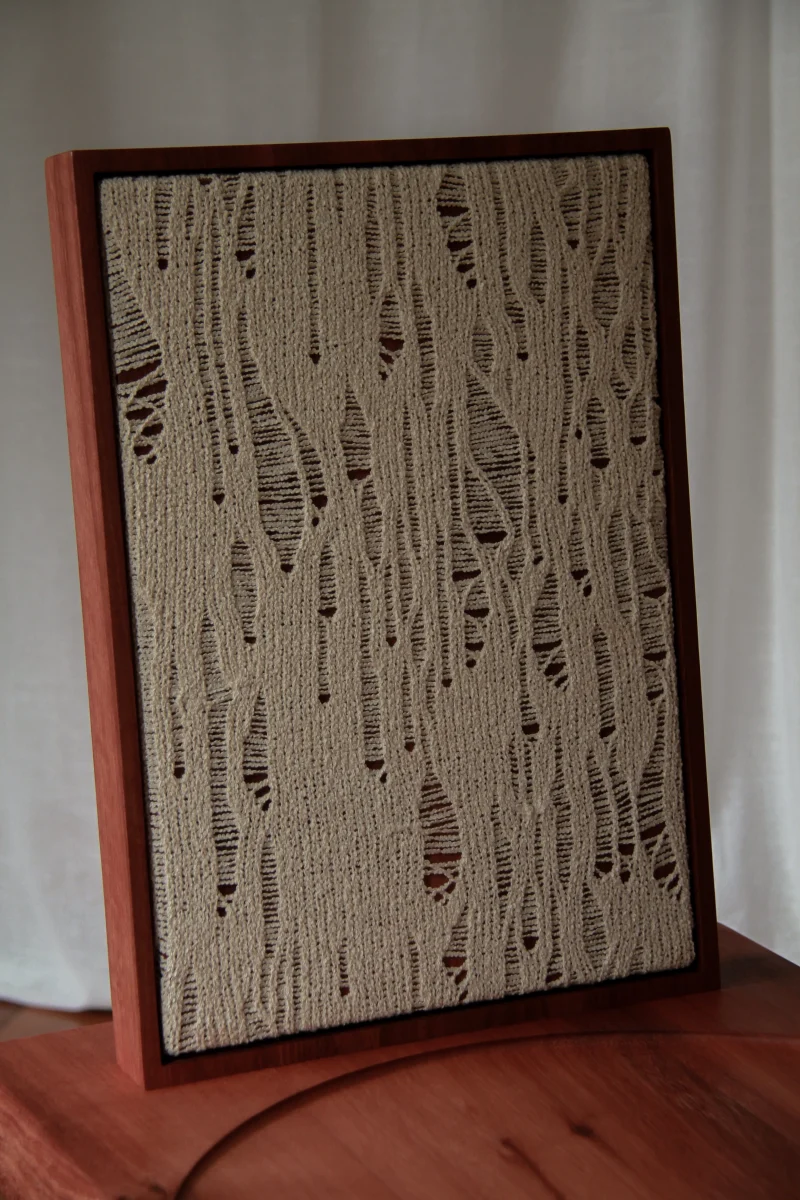 This piece is part of a debut body of work by Curtis Bloxsidge that infuses knit textures with minimalist jarrah timber forms.
