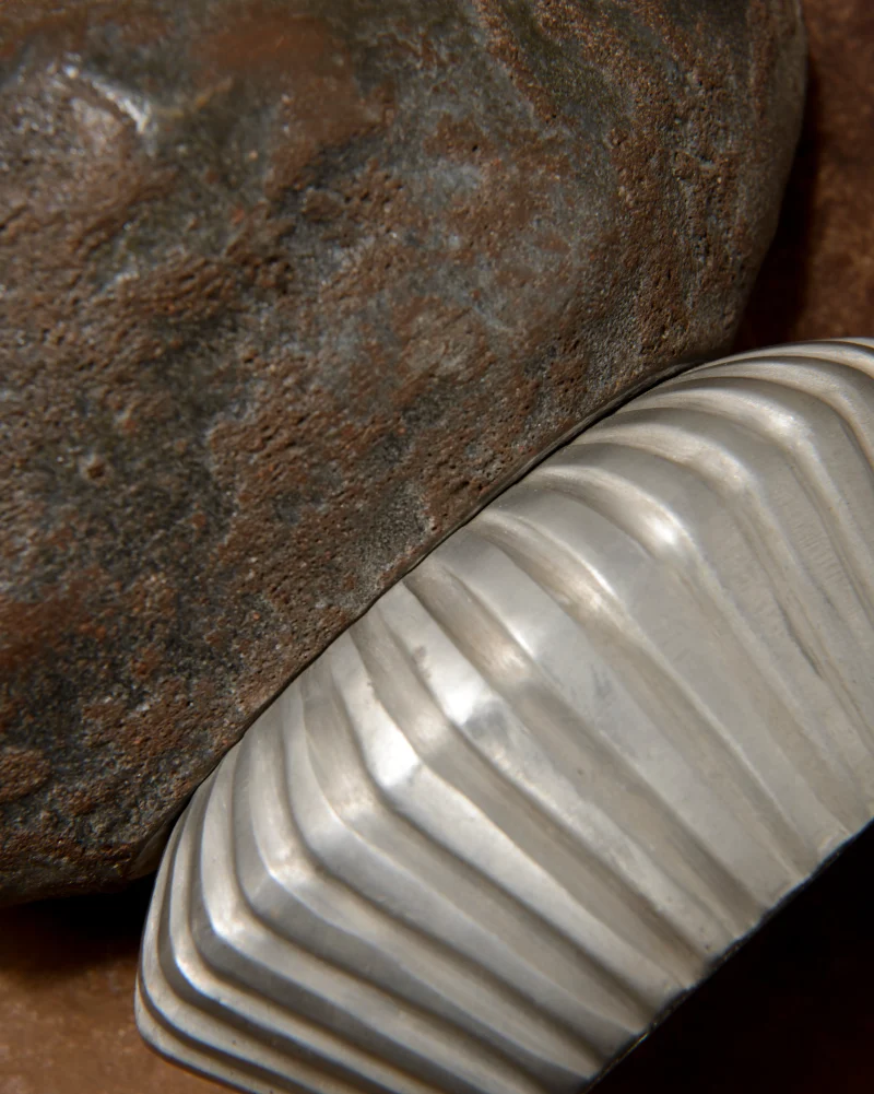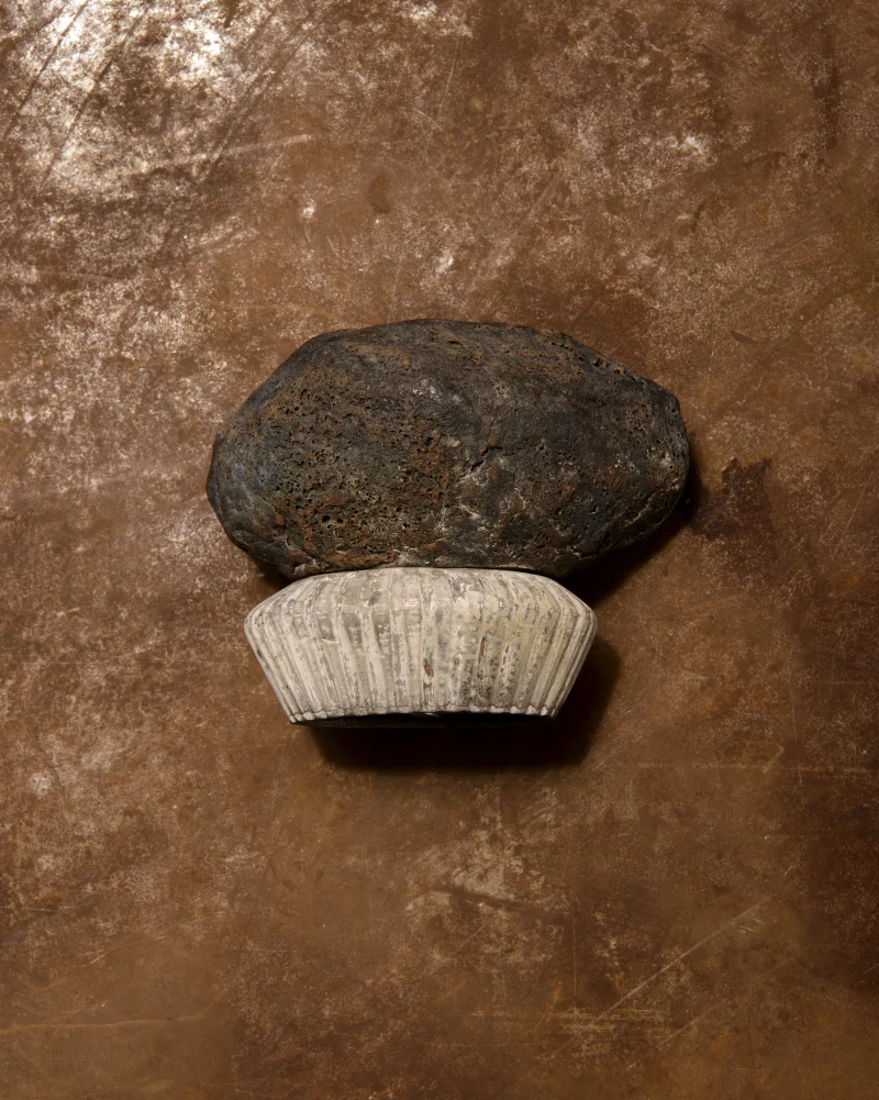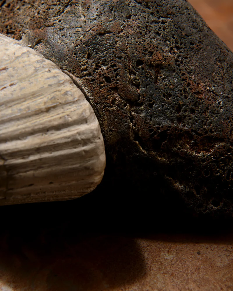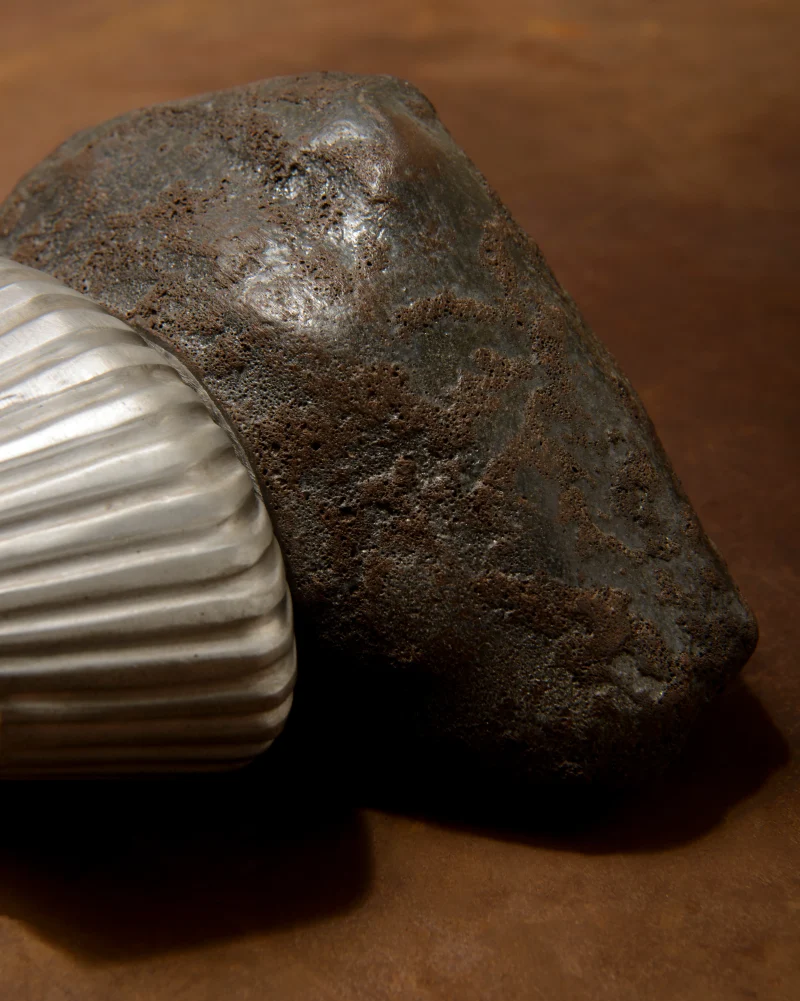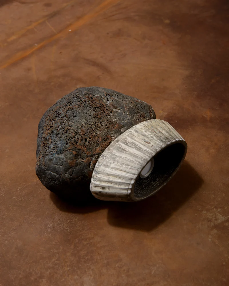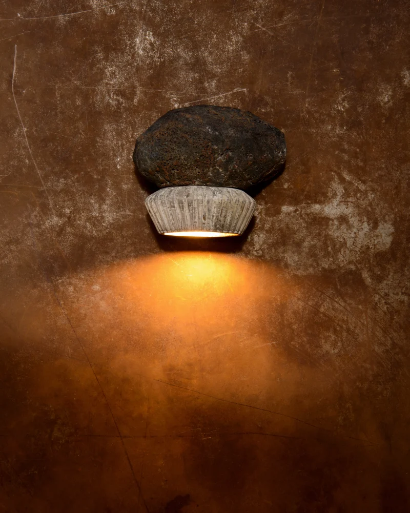 Designed to be more than just functional lighting, these pieces explore the idea of identity through form and material. Inspired by Franca Sozzani, it explores contrast in forms and textures through sculptural, made-to-order metal pieces treated to resemble the quiet textures of natural rocks.