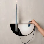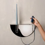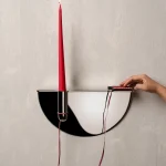 Drawing from familiar Indian street and office scenes – pens tied with string in government offices or lighters hanging in local smoke shops – this wall-mounted candle holder is an ode to everyday ingenuity. Crafted in stainless steel, it elevates a utilitarian gesture into a thoughtful, sculptural form, holding a candle delicately in place while evoking nostalgia and quiet charm.