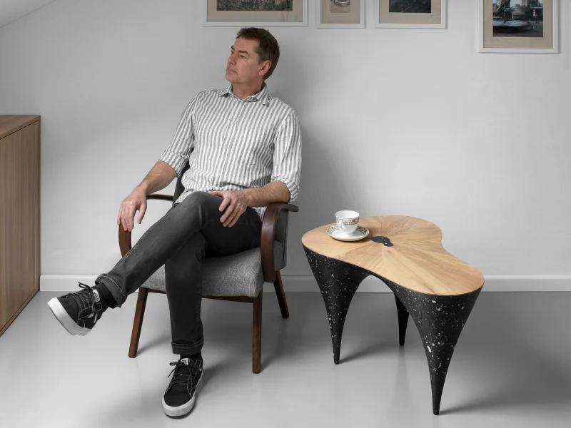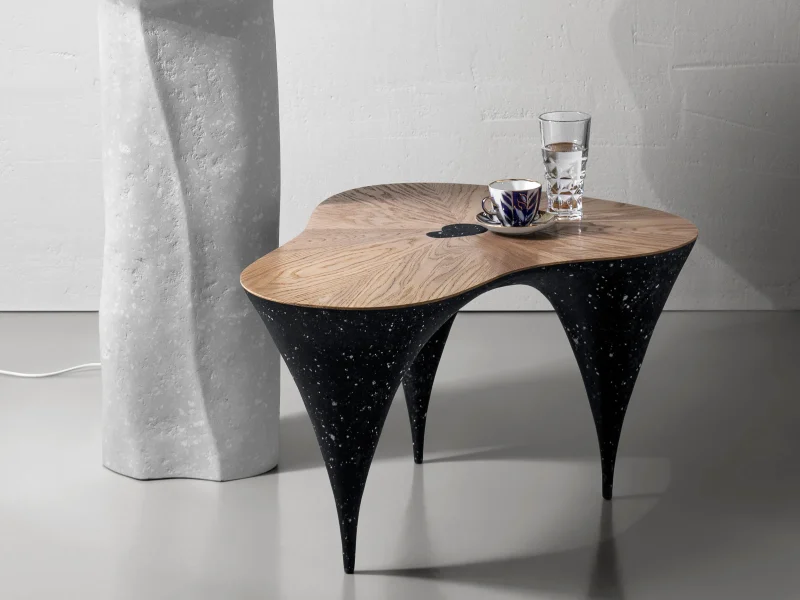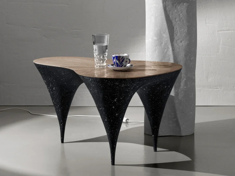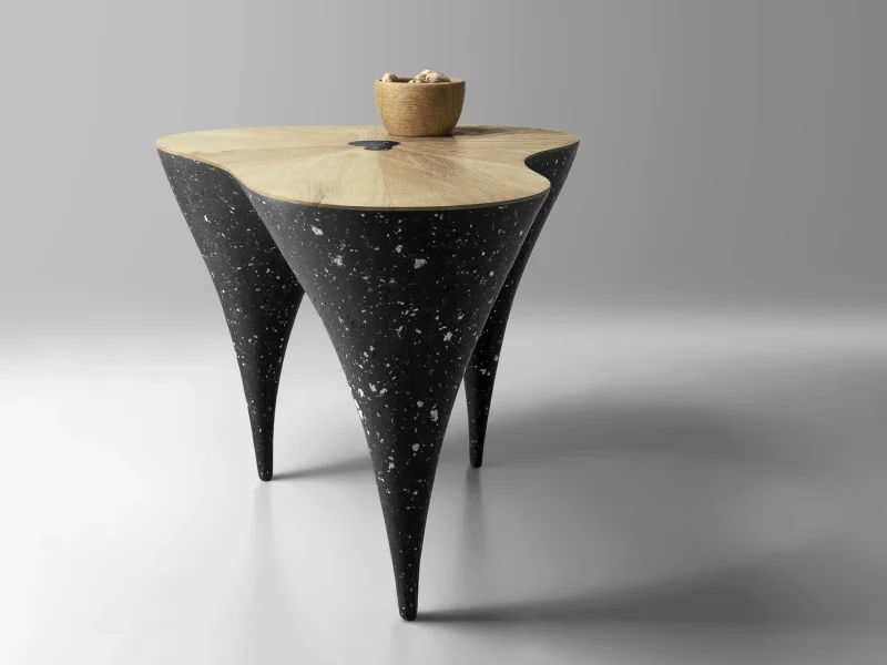 The visual inspiration for the coffee table is a combination of natural wood and concrete. These two opposite materials combined, create a eclectic character of the product that has the coldness of concrete and the coziness of wood. Although wood and concrete have different properties, in interior they are complementary and perfectly compatible. The main goal of the project was to create not only a piece of furniture, but also a sculptural and elegant detail of the interior.