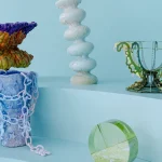 Digitally formed “Wave Vase”, handcrafted in unique and experimental glaze work effects on ceramic. The unique form is a consequence of being digitally generated; together with the slow firing of the ceramics, resulting in a unique curled effect where gravity animates the digital forms.