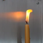 A candle holder rendered in stainless steel is mounted onto the wall as an altar panel painting that folds closed to simulate a medical cabinet. The candle supported by the metal structure is pierced by nails at different heights marking time intervals in a contemporary rendition of the ancient candle alarm clock. Deliberately syncretic, the object references themes of ancient ritual and religious practices while addressing modernist values of asepsis. As the candle shortens the melting wax releases the nails onto the cabinet’s metal plate which drop with loud “clings”. This moment marks a sudden fractionalization of an otherwise fluid condition of time. A suspension of a state of temporal leisure into that of pragmatic count; palpably evidencing differences between Henry Bergson’s concepts of “objective time”: the time of watches, timetables, calendars, with that of “duration” (la durée); lived time, time felt and acted measured by subjective experience.