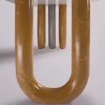This statement piece by Donna Maria Feghali features a sculptural design. Ideal as a dining table for 6 to 8 chairs, it also makes a stunning centerpiece in a large entrance hall. The base consists of four arched cylinders, each sculpted from a single stone, creating captivating visual angles and perspectives. The top mirrors the base with its marble dots. This table is customizable with various marble and stone finishes. Some stones are more suitable for the top, while others are better for sculpting the base.