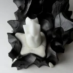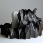 Hand carved from repurposed pine wood and remnants of white marble. The pine is enhanced using the traditional Japanese Yakisugi method transforming and enhancing the material, and it’s then elegantly finished with natural oils and sealed with beeswax. Beneath, a subtle cork lining ensures your surfaces remain pristine.