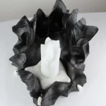 The melting marble presses into the organic shapes of the scorched wood, as wildly dancing flames rise like wild roses in the spring breeze.