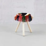 Presented by the design collective co/fab, this collection takes inspiration from the traditional three-legged stool. Each piece is entirely handmade, following time-honored techniques that ensure every product is unique. The chairs, made by Pappo Crafts artisans, the cushions, made by the Zestea collective and designed by Wiener Times, present different colors and prints, with no two alike. While the shape and dimensions of the pillows are consistent with the description, the individuality of each design adds a distinctive touch to each item.