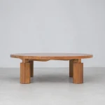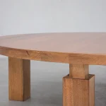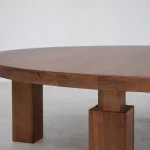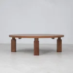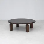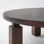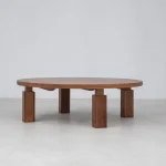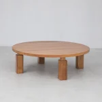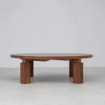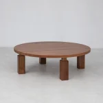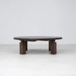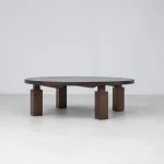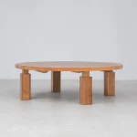 The Wolo Coffee Table by Sun at Six features the beautiful grain and luminescent sheen of makata wood. Its design focuses on contrast as a guiding concept, featuring thick columnar legs attached with thin connective tissue for a sculptural feel. The simple geometry emphasizes the quality of the solid, sustainable makata wood. Available in both a rectangular and round version.