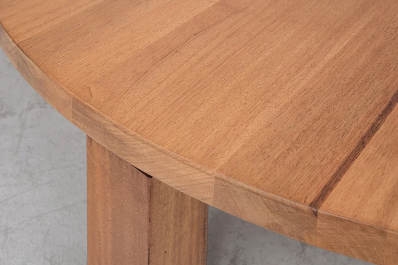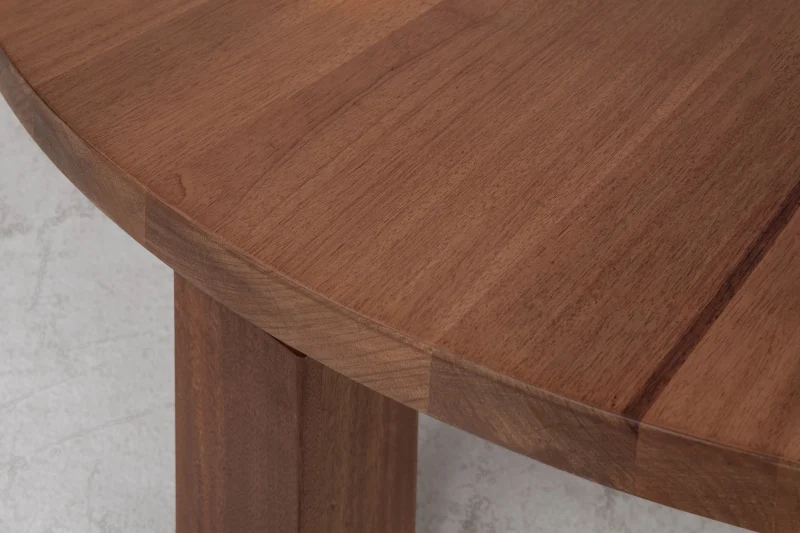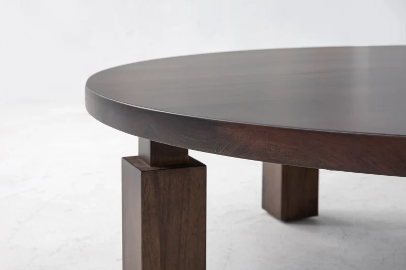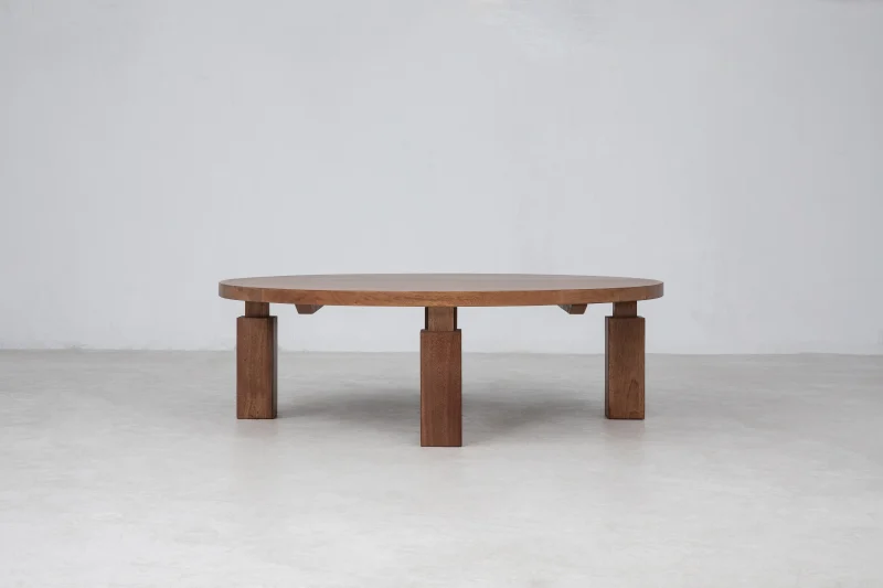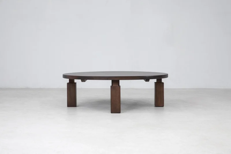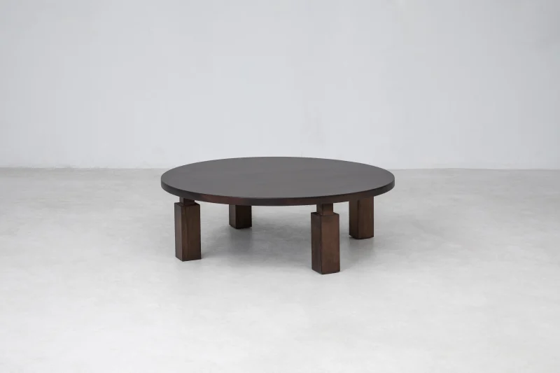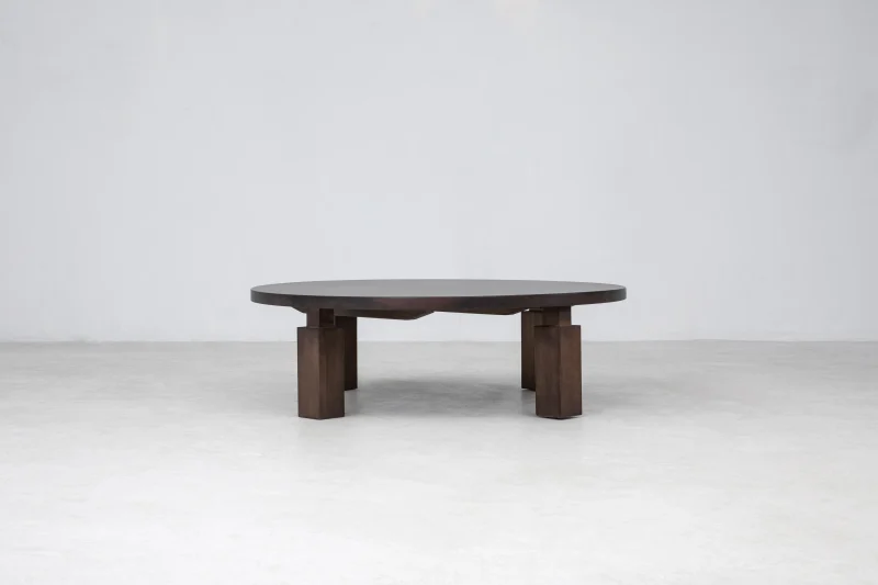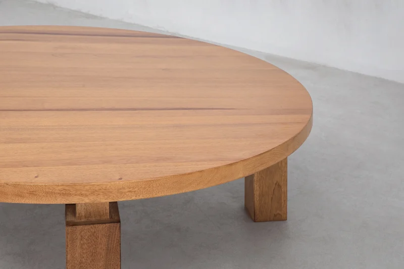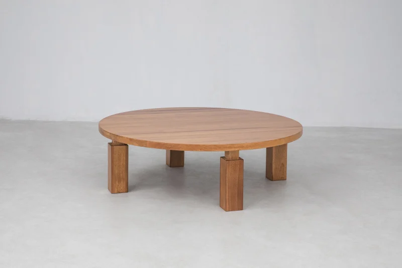 The Wolo Coffee Table by Sun at Six features the beautiful grain and luminescent sheen of makata wood. Its design focuses on contrast as a guiding concept, featuring thick columnar legs attached with thin connective tissue for a sculptural feel. The simple geometry emphasizes the quality of the solid, sustainable makata wood. Available in both a rectangular and round version.