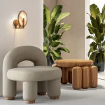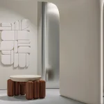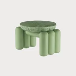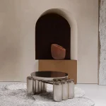 The shape of this wood and marble coffee table imitates the placement of layers inside one cluster.