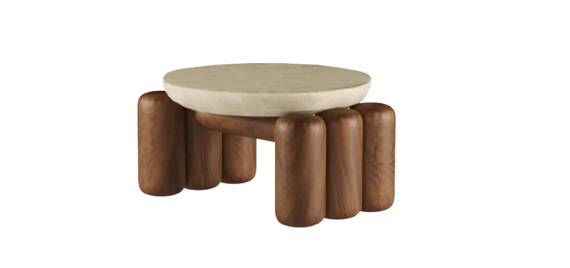 The shape of this wood and marble coffee table imitates the placement of layers inside one cluster.
