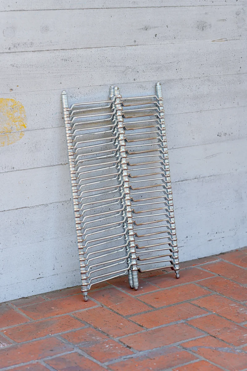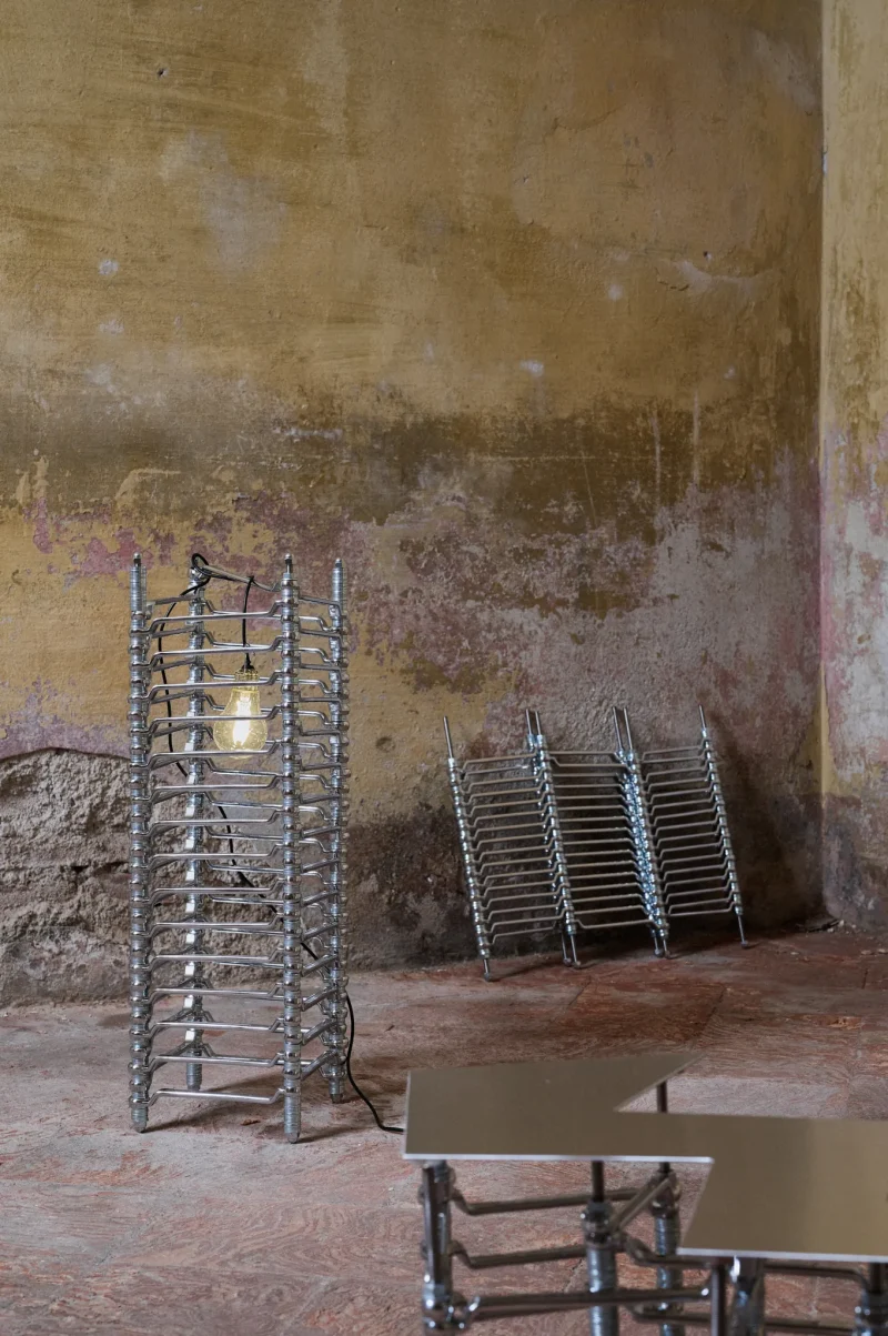 The artist believes that the offset wrenches have a beautiful shape, when incorporated into a piece of furniture or an object, and that this work, “wrench,” will give a different and new function.