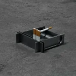Designed and manufactured in Ecuador by design studios NAVE and STUHL, this piece explores the relationship between function and form through the interplay of orthogonal planes. Crafted entirely from stainless steel, the WRP-0004 ashtray is composed of intersecting flat surfaces that define three distinct zones: a tray for collecting ash, a slot for storing cigarettes, and a dedicated rest for the one in use.
