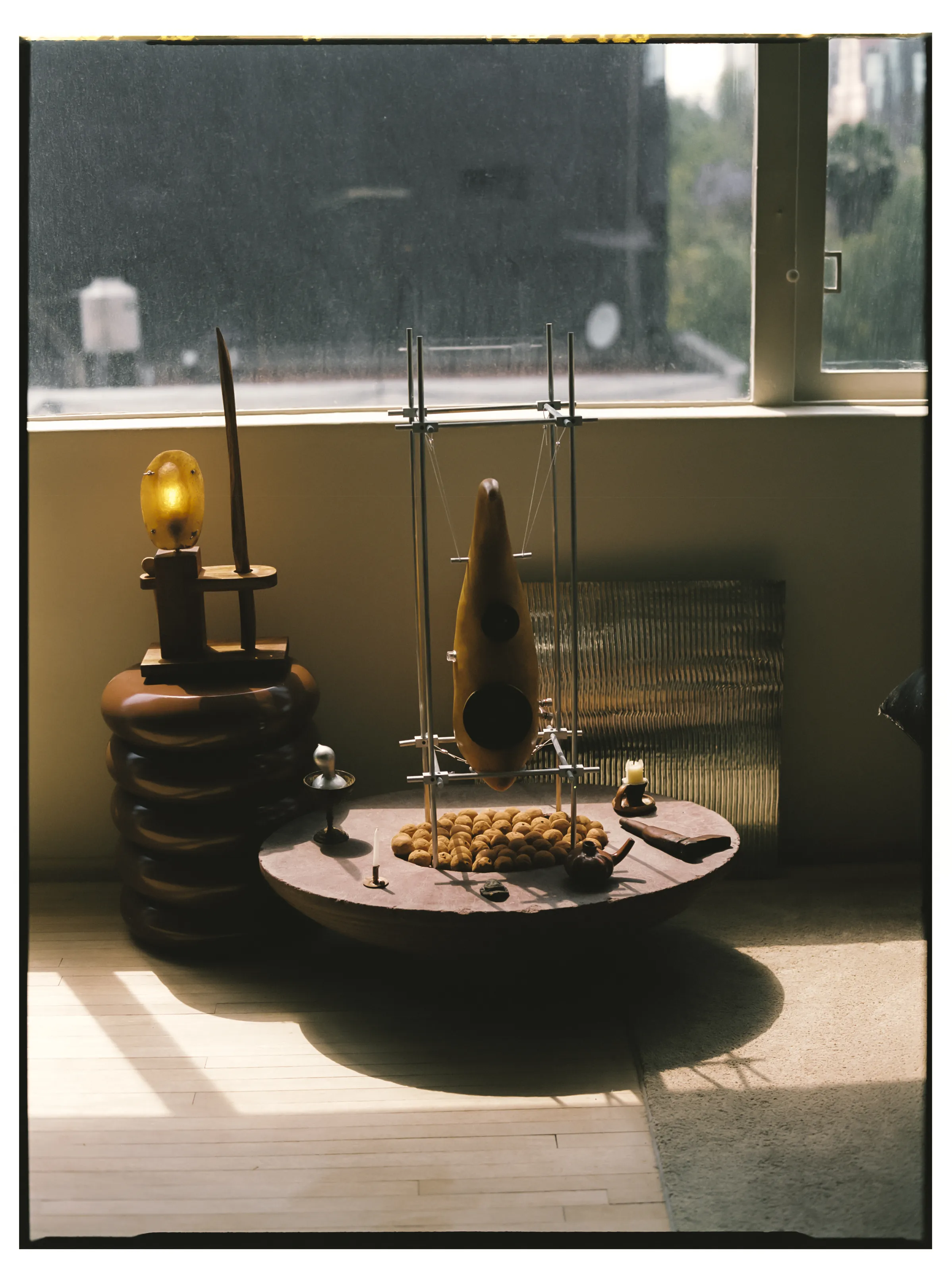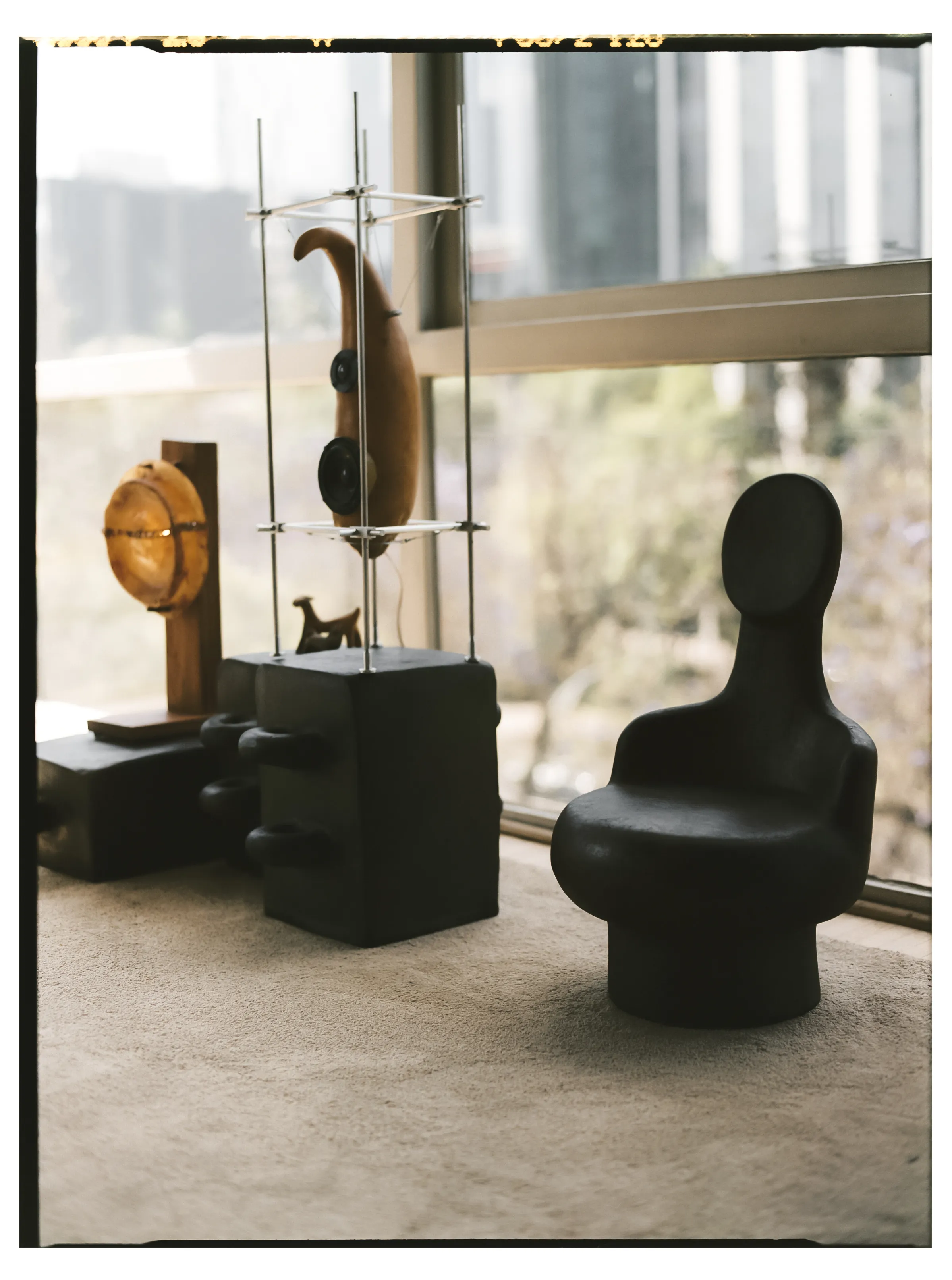 Pol Agustí (b. 1985, Barcelona) is an artist based in Mexico City. His work explores the intersection of solitude, architecture, and spiritual symbolism. Through handcrafted objects—often in black ceramic or raw wood—he builds a language of absence, care, and inner rituals. His practice imagines the life of an unseen hermit, a guardian of pigeons and spirits, whose domestic landscape becomes a metaphysical space. Agustí’s sculptures often recall altars, funerary structures, or devotional tools—devices for grieving, transformation, or quiet observation. Among his most recognizable works is a series of sculptural chairs—ceramic forms that subvert the logic of furniture, proposing instead postures of solitude, stillness, or reverence. These pieces have circulated widely, drawing attention not for their practicality, but for their enigmatic presence: objects that sit more than they are meant to be sat upon. Trained in industrial design at La Llotja (Barcelona) and later earning a degree in production design at ESCAC (Barcelona), Agustí began his path in architecture, collaborating with studios such as EMBT and Josep Miàs, where he developed a sensitivity to space, material, and atmosphere. For over fifteen years, he worked as a production designer for films, music videos, and commercials. These projects led him across the world, building temporary worlds for others. In parallel, he cultivated a photographic practice focused on the mystical, the bodily, and the mythological—often set in timeless landscapes charged with symbolic force. For a time, this dual path provided equilibrium. Eventually, the desire for stillness and continuity led him to settle in Mexico, where his artistic practice deepened and took root. Today, he works across sculpture, scenography, and installation, crafting symbolic objects and environments that inhabit the thresholds between earth and sky, presence and memory. Among his ongoing projects is the production of a series of speakers—sonic sculptures that explore the transmission of voice, echo, and invocation.