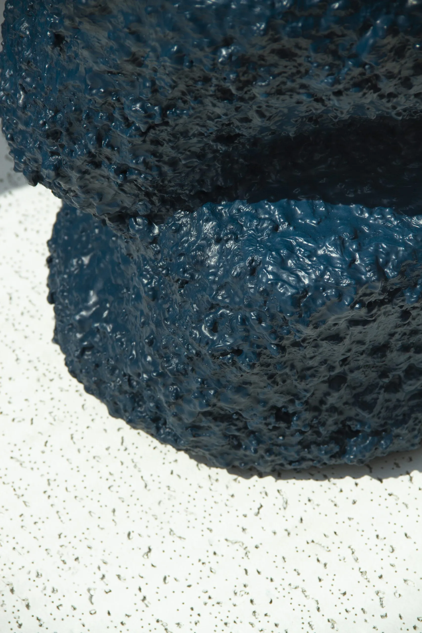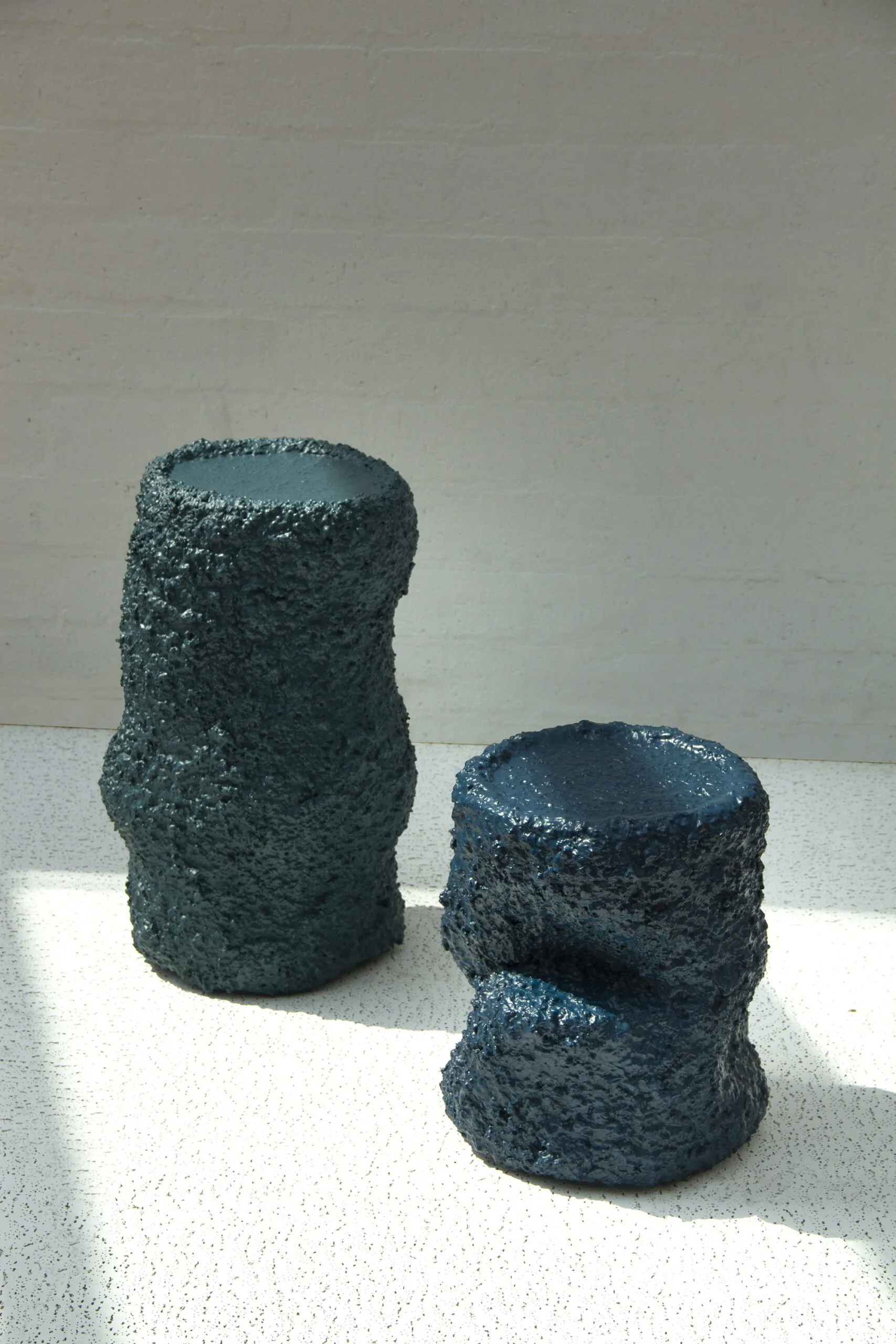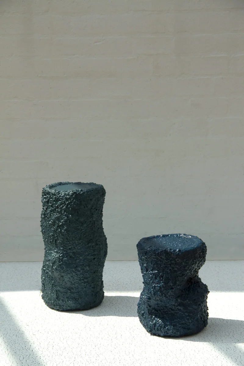 These objects are part of a larger research that Tellurico Design Studio has been developing for a few years, which is about how to apply traditional crafts in contemporary design. In particular, the “Xs+Xm- Side Tables” were created by re-proposing the ancient technique of ”Stucco” where levels on levels of S.C.M. (Special Composite Material) are applied on a primary volume to create a solid and functional object.