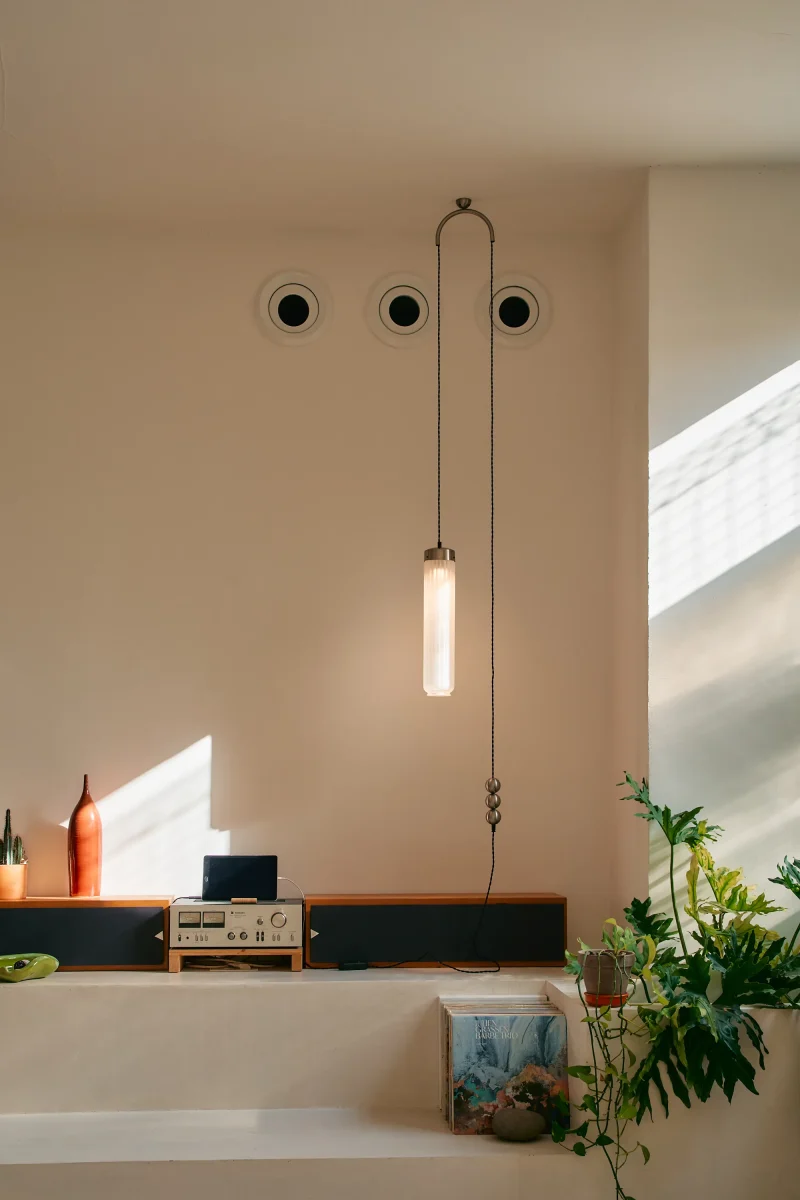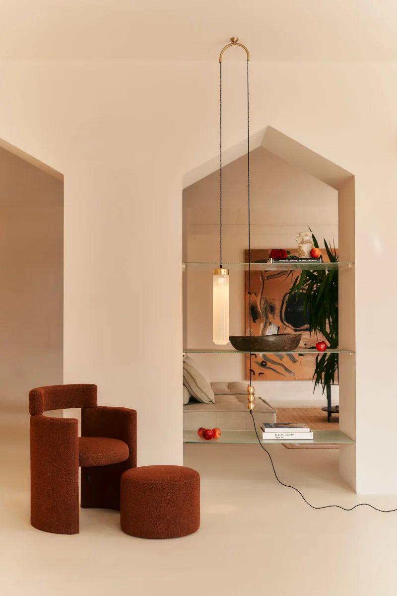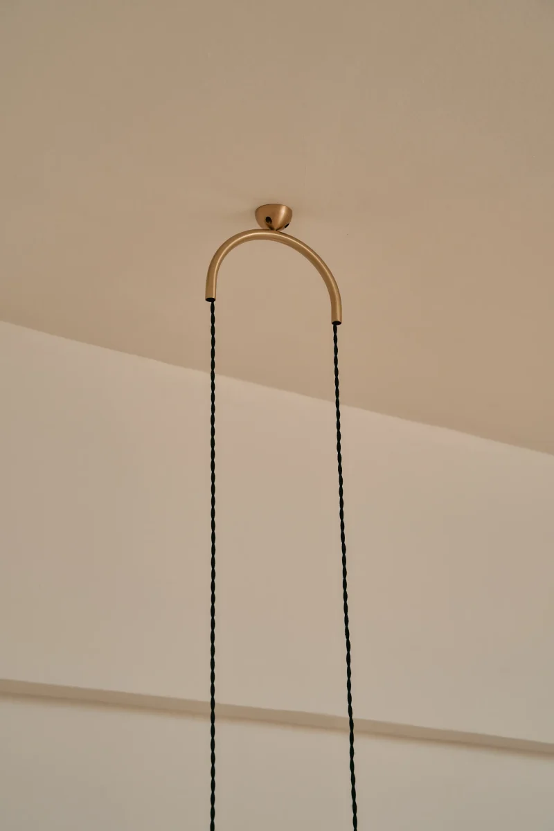 Inspired by a winter retreat along the scenic shores of Costa Brava, Spain, the Y30 Ceiling-to-Floor Lamp embodies the essence of Art Deco minimalism. Crafted by Clara Viladecans and her team based in Milan, this sleek design features a diffused light that seamlessly moves along the twisted electric cable within a curved tube, anchored by three round counterweights for stability. Each fixture, meticulously produced by artisans in Italy and Spain, boasts a choice of satin brass, nickel-plated brass, or semi-matte black brass. The frosted stripped glass diffuser, a testament to craftsmanship, is delicately blown by skilled glass blowers in Italy.