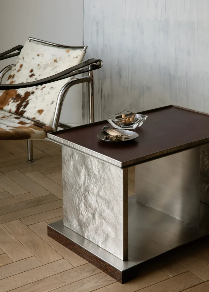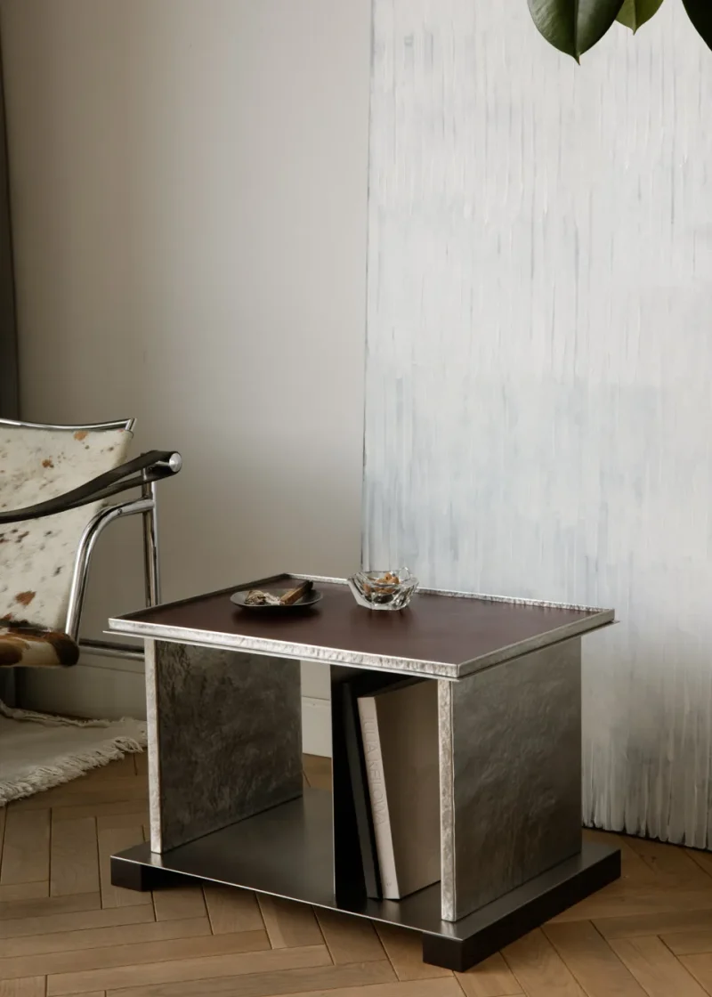 audio furniture Coffeetable Collectibledesign Contemporary furniture contemporatydesign Craft craftwork Designer table functional design interior furniture Leather leather tabletop luxury furniture Metalwork Minimal Modern table record stand Sculptural table Side table Stainless steel Stainlesssteel statement table Table turntable table Vinyl storage wenge wood