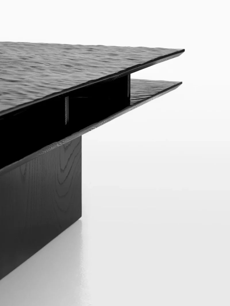 This table design by Woohyun Han draws inspiration from Eastern aesthetics, influenced by the floor-seating culture and traditional Korean hanok architecture. The tabletop is composed of two tiers, providing storage space, and is constructed to be easily assembled and disassembled.
