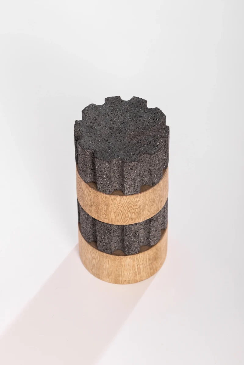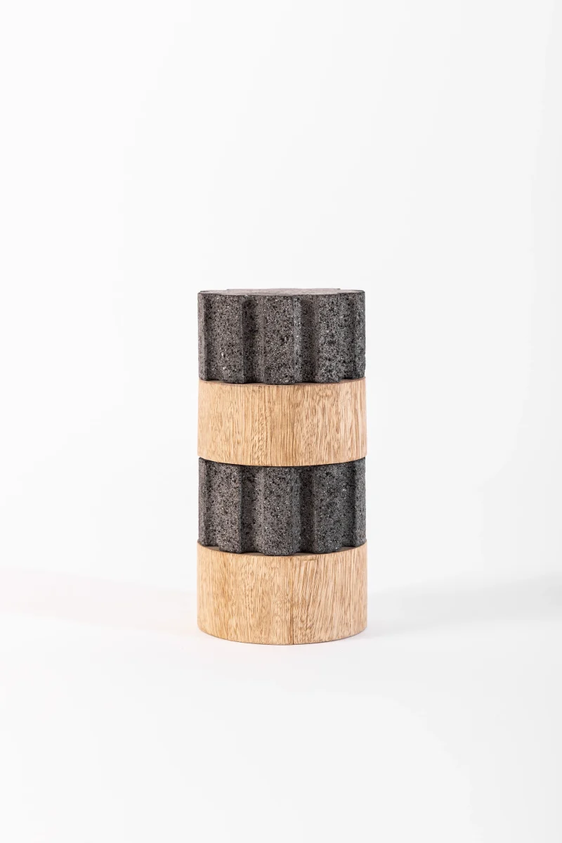 Introducing the ZM Mix Sculpture from Daniel Orozco Studio’s 2024 Collection, a harmonious fusion of natural elements. This mini sculpture features solid jabin wood with a natural finish paired with volcanic stone adorned with vertical grooves, reflecting artisanal excellence. Designed for indoor use, it adds a touch of rustic elegance to any space. With dimensions of 10 cm in diameter and 20 cm in height, it stands as a testament to meticulous craftsmanship and creative vision. The volcanic stone, expertly turned by skilled artisans, adds a distinctive texture and depth to the piece.