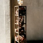 The ZM Tezontle Lamp from Daniel Orozco Studio’s 2024 Collection is a stunning marriage of industrial design and natural allure. Crafted with a sturdy metal structure, this floor lamp is adorned with vibrant red stones sourced from the Bajío region. Each stone is meticulously selected to showcase its unique texture and color variations, adding a touch of rustic charm to any indoor space. Standing at 147 cm tall and measuring 25 cm x 25 cm, this lamp casts a warm and inviting glow, creating a captivating ambiance. Illuminate your home with the ZM Tezontle Lamp, where contemporary style meets the raw beauty of nature’s bounty.