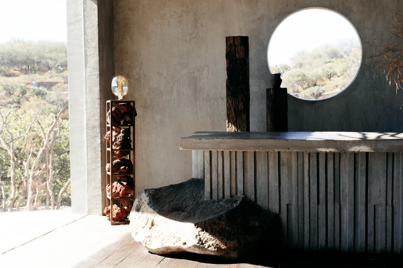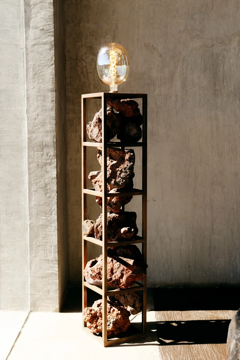 The ZM Tezontle Lamp from Daniel Orozco Studio’s 2024 Collection is a stunning marriage of industrial design and natural allure. Crafted with a sturdy metal structure, this floor lamp is adorned with vibrant red stones sourced from the Bajío region. Each stone is meticulously selected to showcase its unique texture and color variations, adding a touch of rustic charm to any indoor space. Standing at 147 cm tall and measuring 25 cm x 25 cm, this lamp casts a warm and inviting glow, creating a captivating ambiance. Illuminate your home with the ZM Tezontle Lamp, where contemporary style meets the raw beauty of nature’s bounty.
