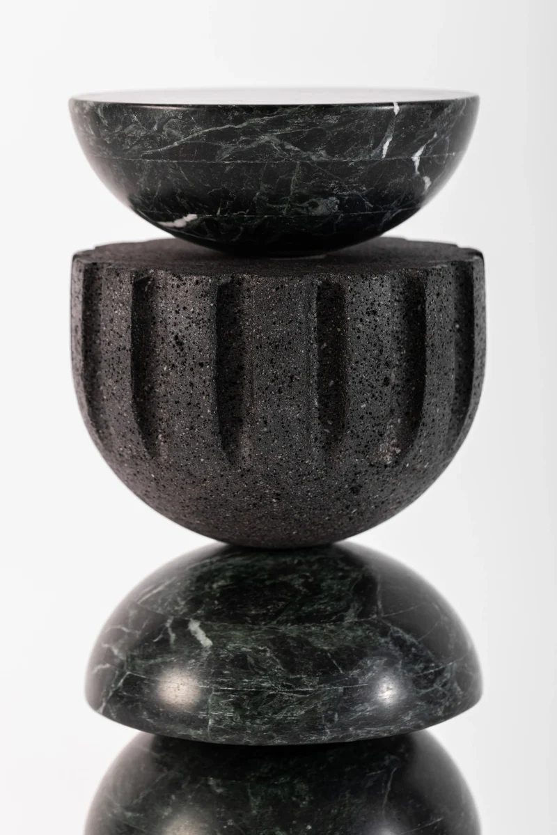 Introducing the ZM Tikal Sculpture from Daniel Orozco Studio’s 2024 Collection, a captivating blend of elegance and natural beauty. This decorative sculpture is crafted from Tikal green marble and volcanic stone with intricately carved grooves, showcasing exquisite craftsmanship. Suitable for both indoor and outdoor use, it adds a touch of sophistication to any setting. Standing at 40 cm tall with a diameter of 14 cm, it commands attention while maintaining a sleek profile. The volcanic stone, meticulously turned by skilled artisans, adds a unique texture and character to the piece.