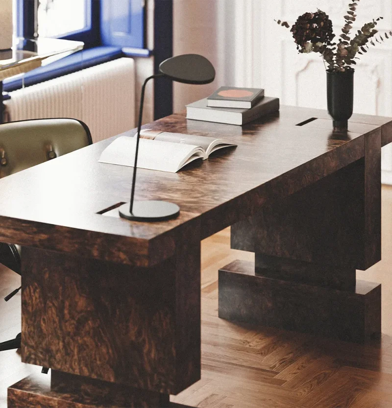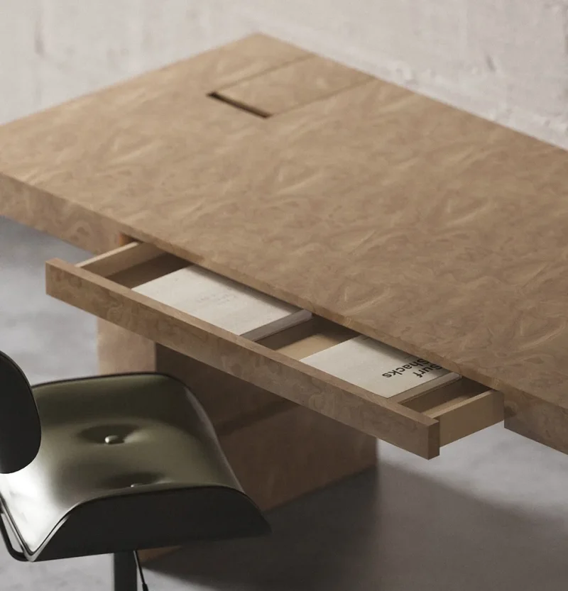 Autumnal Design Brutalist Desk with drawers Functional functional design Geometric Home Office Minimalistic desk Modern design Modern luxury furniture Oak wood Office Hours Retro Romanticism Sleek Design Space Age Table veneered wood Walnut wood Wooden desk Woodmaking Work desk